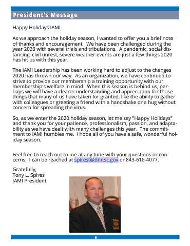 ment to IAMI humbles me. I hope all of you have a safe, wonderful hol-