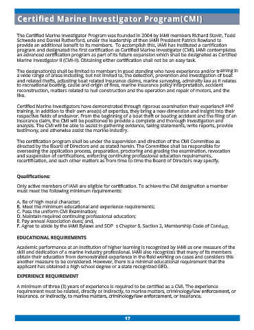 program and designated the first certification as Certified Marine Investigator (CMI). IAMI contemplates